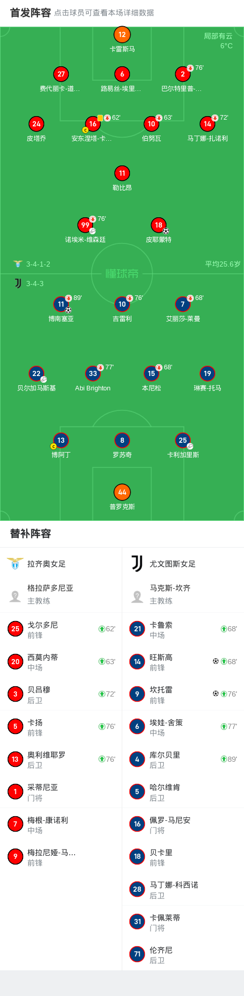 在比赛中,贝尔加马斯基和坎托雷等尤文图斯女足球员表现出色,他们在场上展现出良好的技术和战术娴熟度。另一方面,拉齐奥女足也展现了顽强的拼搏精神和团队合作意识,但最终还是不敌对手的强大实力。